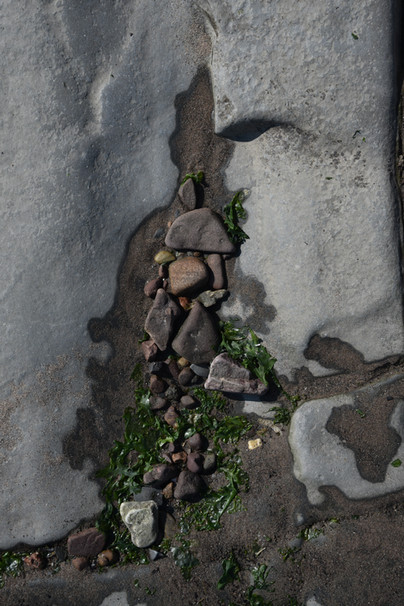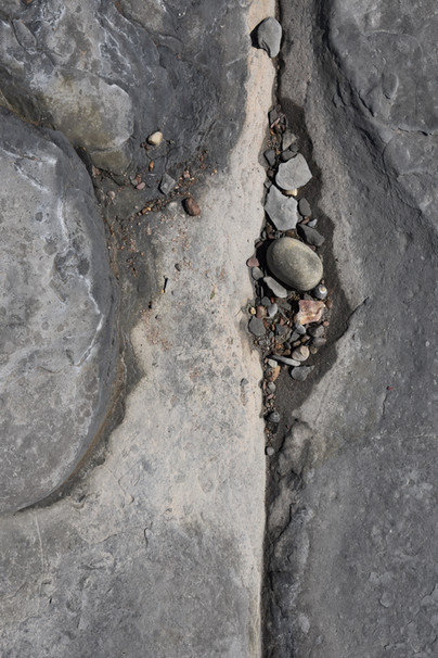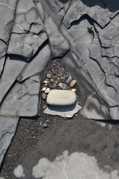 In this series of photographs I looked at the random arrangement of pebbles by the changing tides against the rocky crevassed formations. Perhaps nature makes for better arrangements than the human hand.
