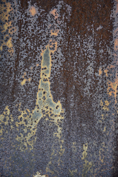 My first attempt to investigate the conneection between burnt and rusted surfaces and pictures of deep space. For some photographs I used a burnt out incinerator and its lid as props for the idea. Flour dusted on a flat tarmac ground was used to resemble the idea of distant galaxies.